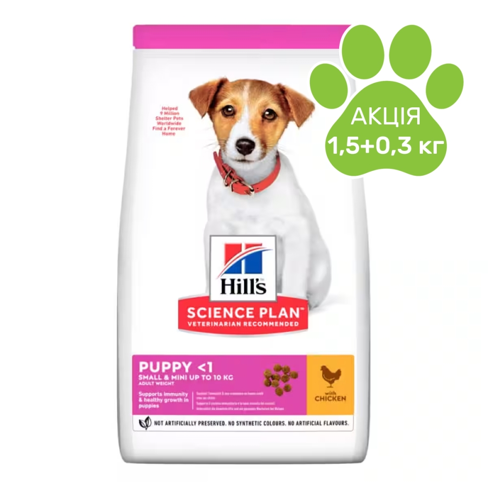 Hills Science Puppy Small & Mini Chicken Сухий корм для цуценят міні та малих порід з куркою 1,5 кг + 300 гр