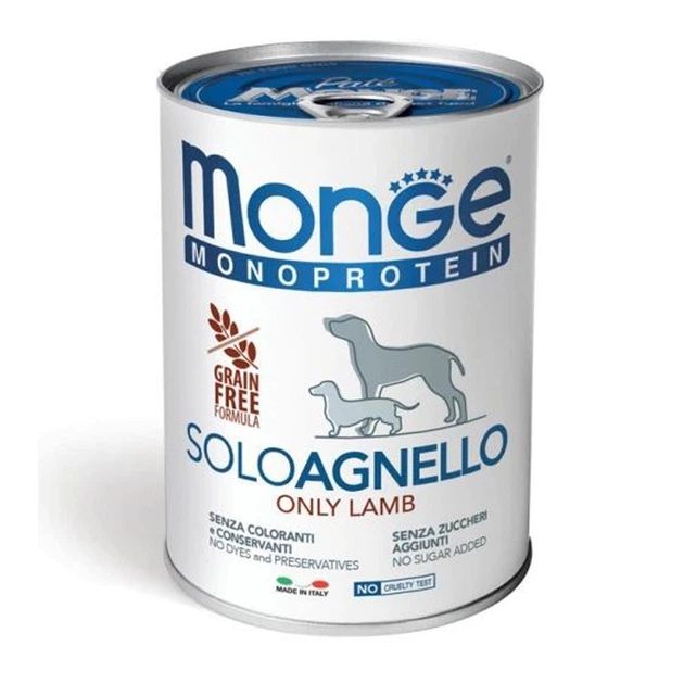 Вологий корм для дорослих собак Monge dog корм solo 100 з ягням 400 г