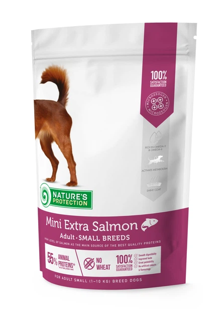 Сухий корм для дорослих собак малих порід з лососем Nature’s Protection – здоров’я, енергія та блискуча шерсть! 500 г.