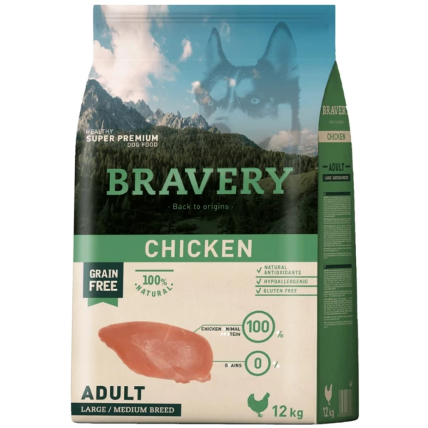 BRAVERY Chicken Adult Large/Medium,сухий корм для дор.собак середніх та великих порід,з куркою 12kg (307)