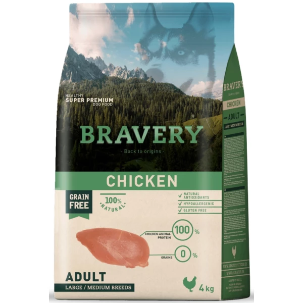 BRAVERY Chicken Adult Large/Medium,сухий корм для дор.собак середніх та великих порід, з куркою 4kg