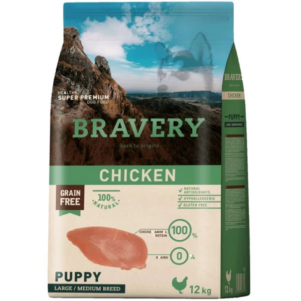 BRAVERY Chicken Puppy Large/Medium,сухий корм для цуценят середніх та великих порід,з куркою 12kg (310)