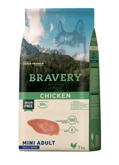 Сухий корм для собак BRAVERY Chicken Mini Adult,сухий для дорослих собак дрібних порід,з куркою, 7 кг