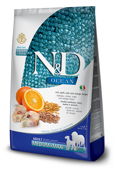 Беззерновий сухий корм Farmina N&D Grain Free OCEAN PUMPKIN для собак середніх і великих порід з тріскою та апельсином 2,5 к