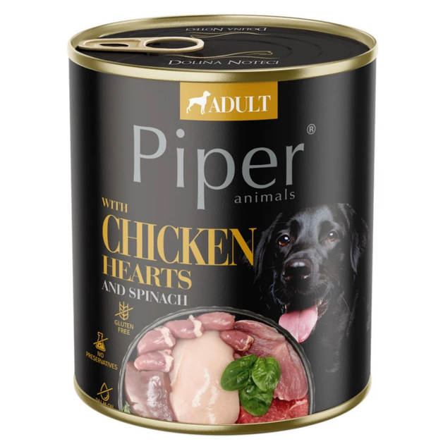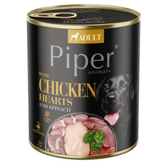 Вологий корм для собак "DN Piper" консерви з курячими серцями і шпинатом 800 г