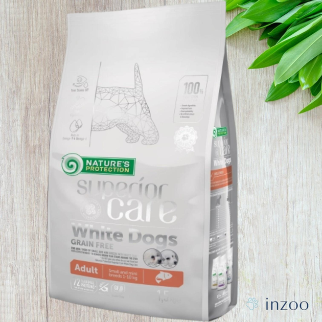 Сухий корм Nature's Protection White Dogs Grain Free Salmon Adult Small для білих собак малих порід з лососем, 1.5 кг