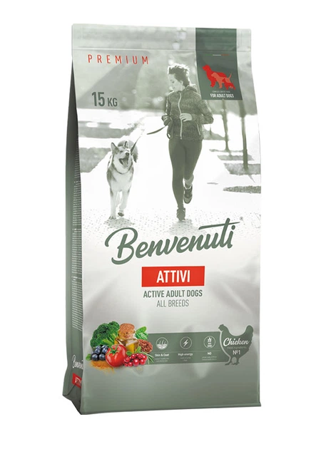Корм для собак BENVENUTI ATTIVI для активних собак усіх порід 15кг (корм бенвенути, бенвенуті)