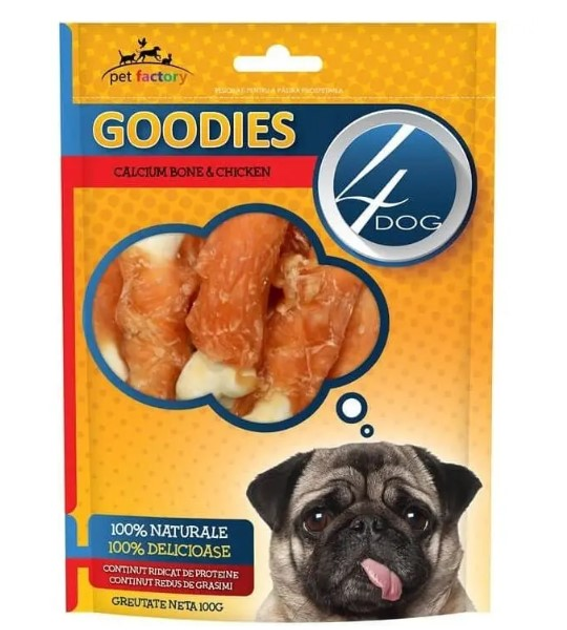 Ласощі для собак 4Dog роли із сирої шкіри з куркою 100 г