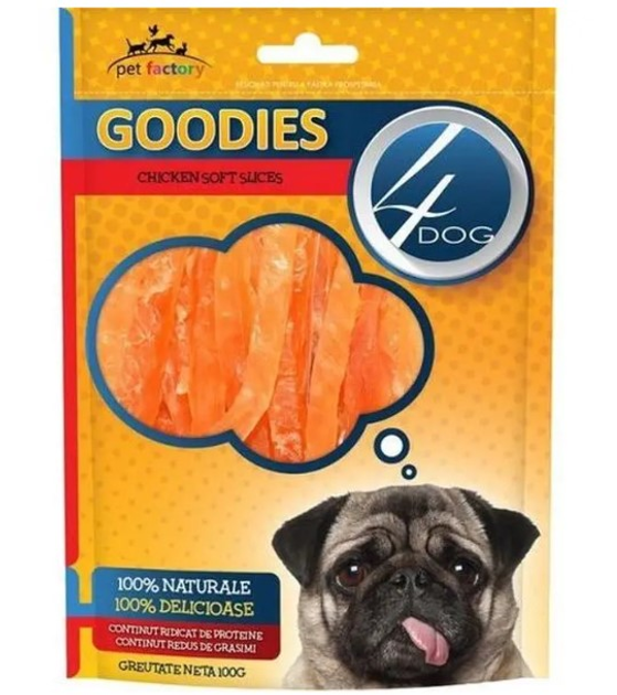 Ласощі для собак 4Dog м'ясні скибочки з курки 100 г