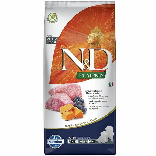 Сухий корм з ягнятком для цуценят середніх та великих порід Farmina N&D Pumpkin Dog Lamb & Blueberry Puppy Medium & Maxi, 2.