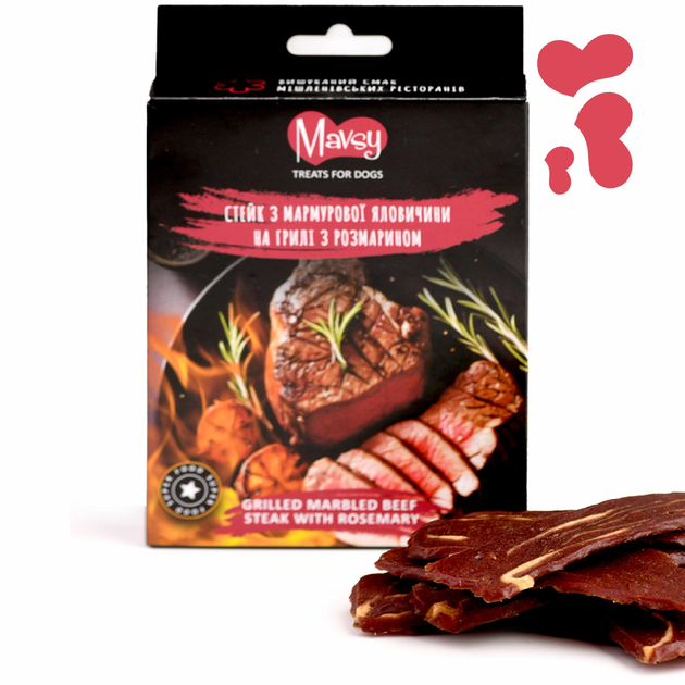 Ласощі для собак від 3-х місяців Mavsy Refined jerky GRILLED MARBLED BEEF STEAK WITH ROSEMARY стейк з мармурової яловичини н