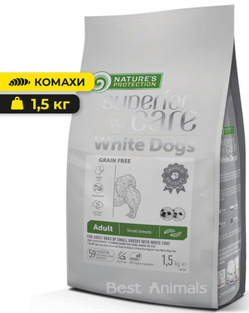 Сухий беззерновий гіпоалергенний корм для собак малих порід Nature's Protection Superior Care White Dogs Grain Free Adult Sm