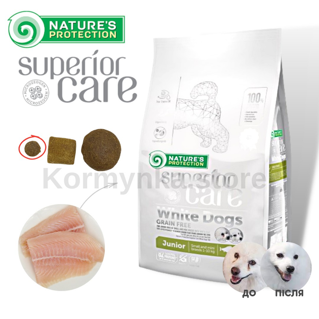 Сухий беззерновий гіпоалергенний корм для цуценят малих порід Nature's Protection Superior Care White Dogs Grain Free Junior