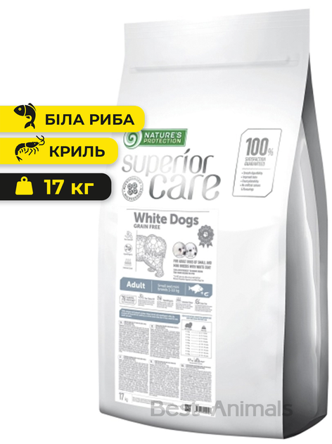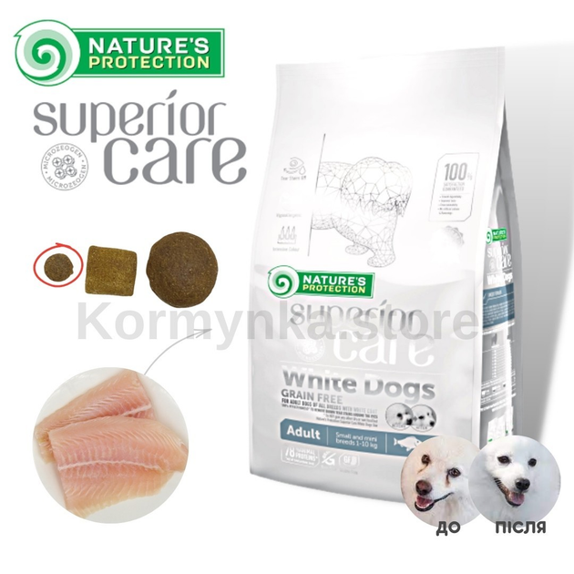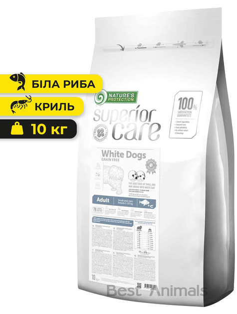 Сухий без зерновий корм Nature's Protection Superior Care для дорослих собак малих порід із білою шерстю 10 кг