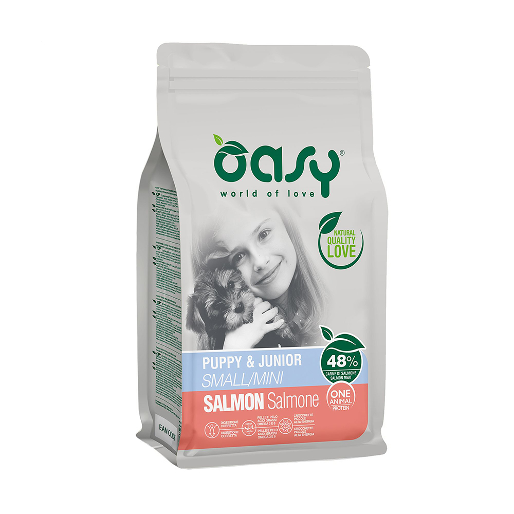 Сухий корм для цуценят малих порід Oasy One Animal Protein Puppy & Junior Small/Mini з лососем, 800 г