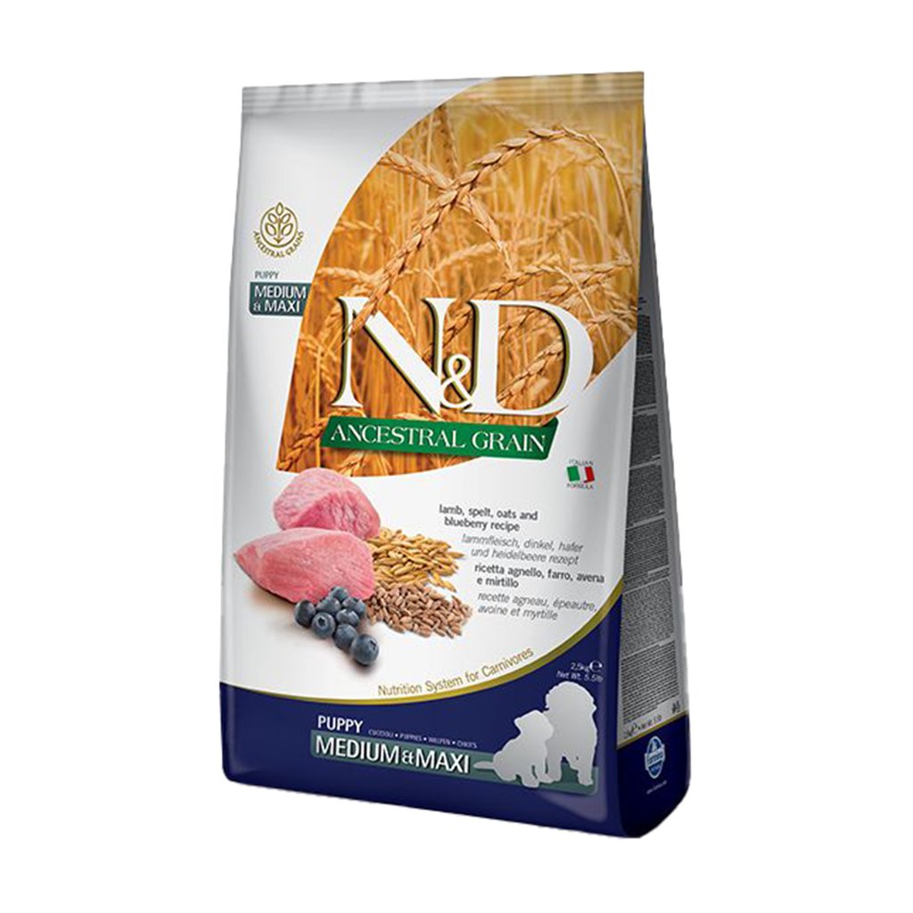 Сухий корм для цуценят середніх та великих порід Farmina N&D Ancestral Grain з ягням та чорницею, 2.5 кг