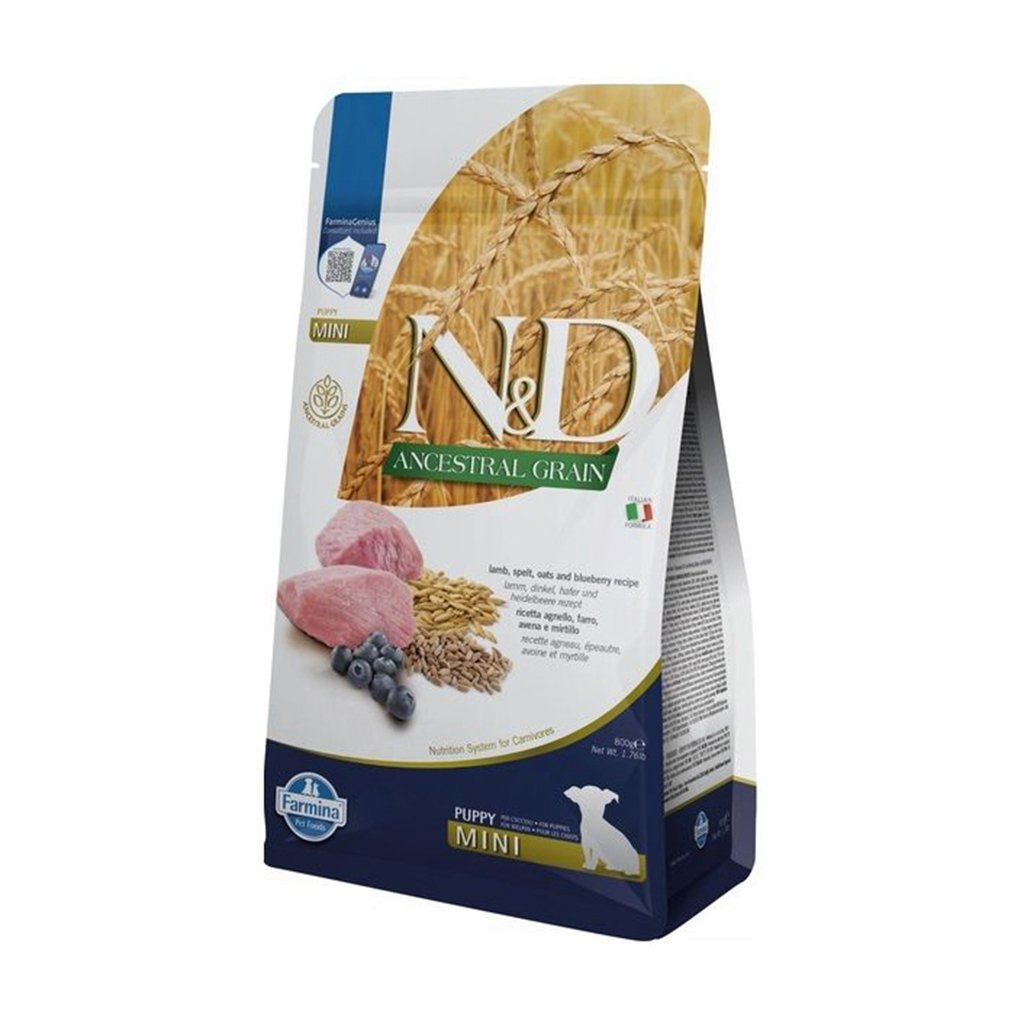 Сухий корм для цуценят дрібних порід Farmina N&D Ancestral Grain з ягням та чорницею, 800 г