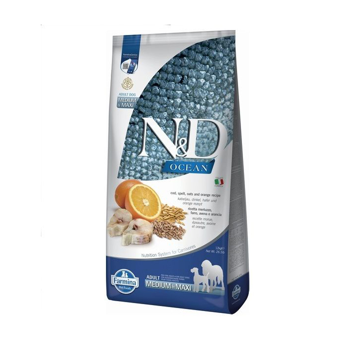 Сухий корм для собак середніх та великих порід Farmina N&D Ocean з тріскою та апельсином, 12 кг