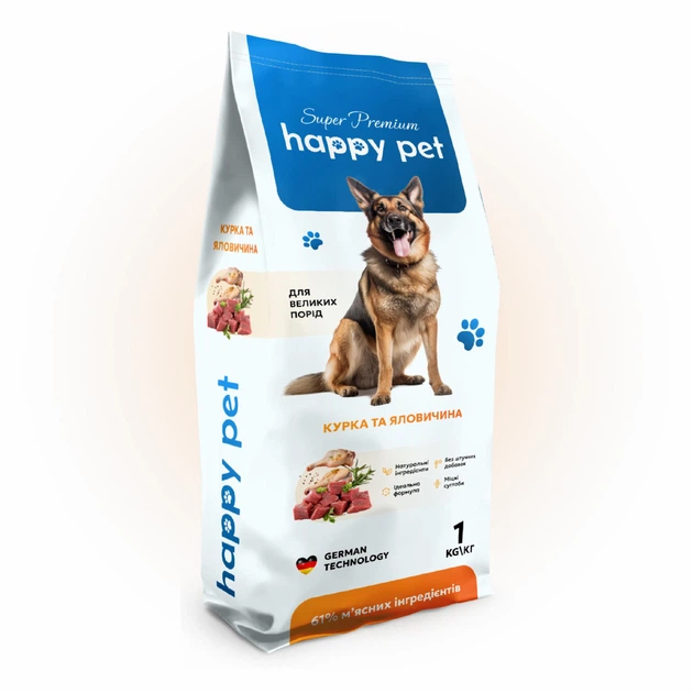 Сухий корм для собак великих порід Happy Pet з куркою та яловичиною 1 кг
