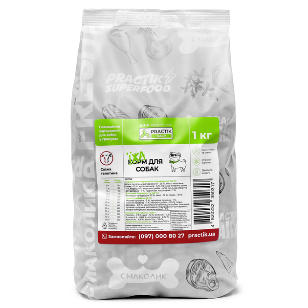 Їжа для собак «Свіжа телятина» PRACTIK DAILY 1 кг