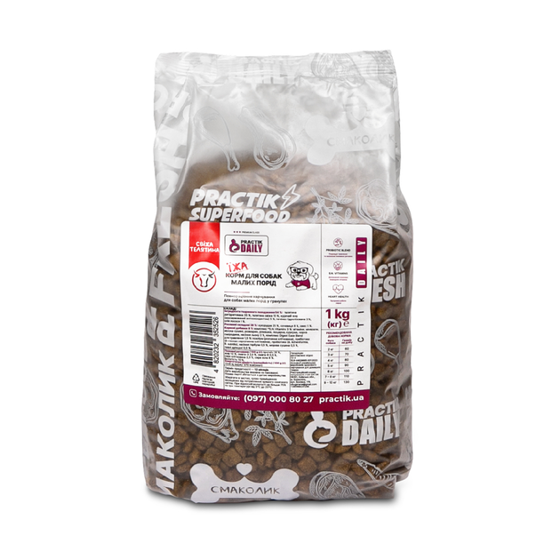 Їжа для собак малих порід "Свіжа телятина" PRACTIK DAILY 1 кг