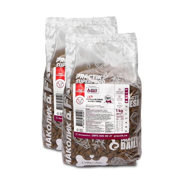 Їжа для собак малих порід "Свіжа телятина" PRACTIK DAILY 2 кг