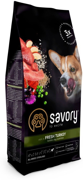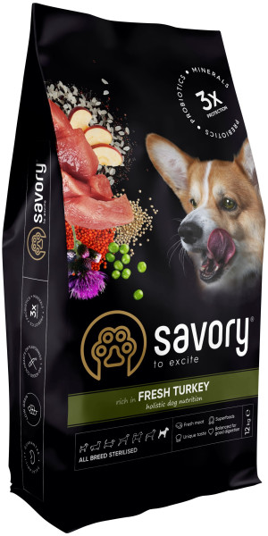 Savory Корм сухий Savory All Breed Sterilised rich in Fresh Turkey для стерилізованих собак усіх порід зі свіжою індичкою 1