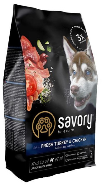 Savory Корм сухий Savory Junior Large rich in Fresh Turkey and Chicken для молодих собак великих порід від 25 кг зі свіжою і