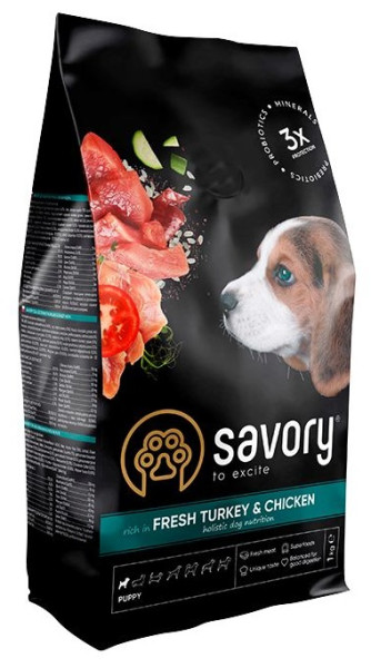 Savory Корм сухий Savory Puppy rich in Fresh Turkey and Chicken для цуценят всіх порід зі свіжою індичкою і куркою 1 кг