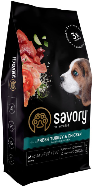 Savory Корм сухий Savory Puppy rich in Fresh Turkey and Chicken для цуценят всіх порід зі свіжою індичкою і куркою 3 кг
