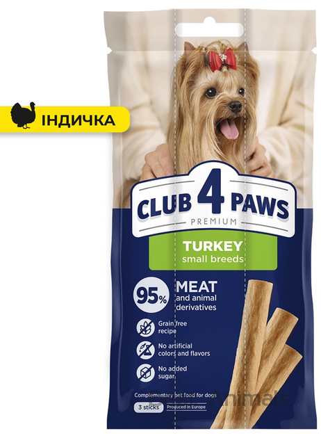 Ласощі для собак Club 4 Paws м'ясна паличка індичка для малих порід 3 шт 12 г
