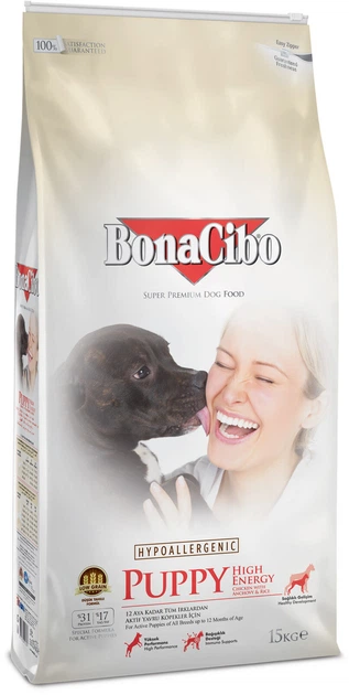 BonaCibo Puppy HIGH ENERGY з м`ясом курки, анчоусами та рисом для активних цуценят всіх порід до 12 місяців, 15+3 кг