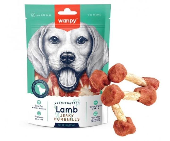 Ласощі для собак Wanpy КІСТКА-ГАНТЕЛЬ З В'ЯЛІМ ЯГНЯМ (Lamb Jerky Dumbbells) 100 г