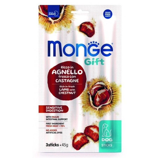 Ласощі для дорослих собак з чутливим травленням з ягнятком і каштанами Monge Gift Dog Sensitive Digestion Adult Lamb & Chest