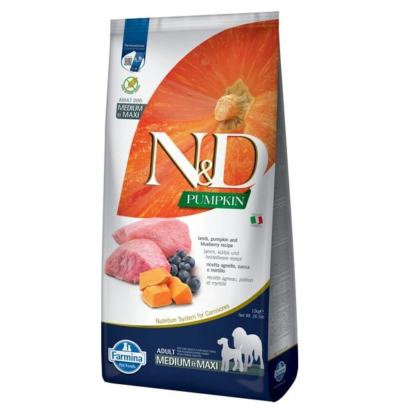Фарміна сухий корм для собак N&D GRAIN FREE PUMPKIN LAMB & BLUEBERRY ADULT MEDIUM & MAXI з ягнятком, гарбузом та чорницею, 1