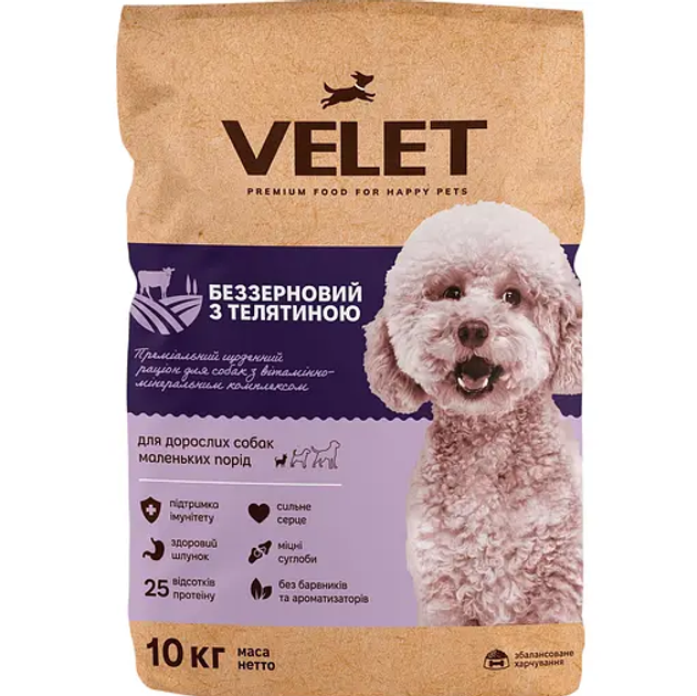 Сухий корм для дорослих собак малих порід Velet (беззерновий з телятиною) - 10кг