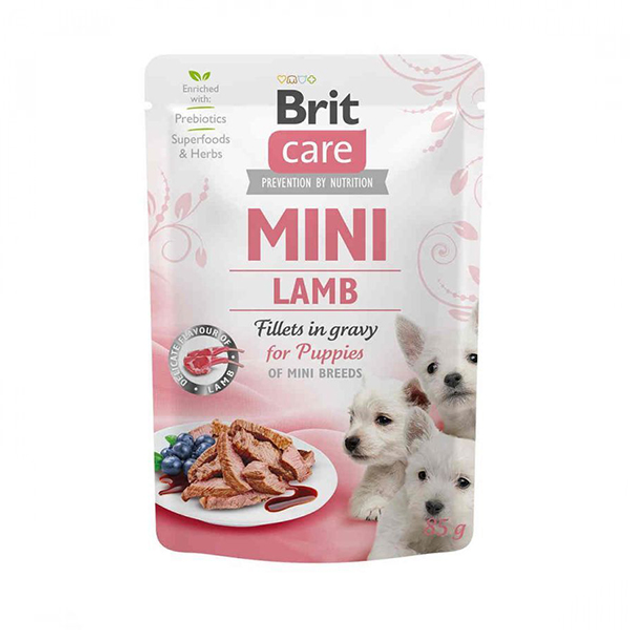 Консерва Brit Mini Lamb fillets in gravy for puppies для цуценят маленьких порід з філе ягня в соусі 85 г