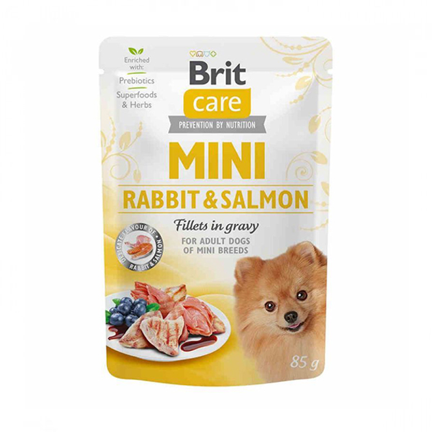 Консерва Brit Mini Rabbit & Salmon fillets in gravy для собак маленьких порід з кроликом і лососем в соусі 85 г