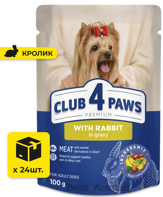 Вологий корм для собак малих порід Club 4 Paws Клуб 4 Лапи з кроликом в соусі пауч 100 г 24 шт