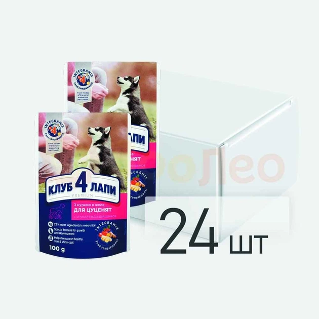 Консервований корм для цуценят всіх порід CLUB 4 PAWS, курка в желе, 100 г (24 шт)