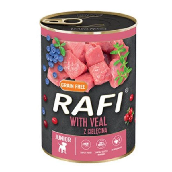 Вологий корм Dolina Noteci Rafi Консерви junior для цуценят 400гр паштет телятина, лохина, журавлина 305088