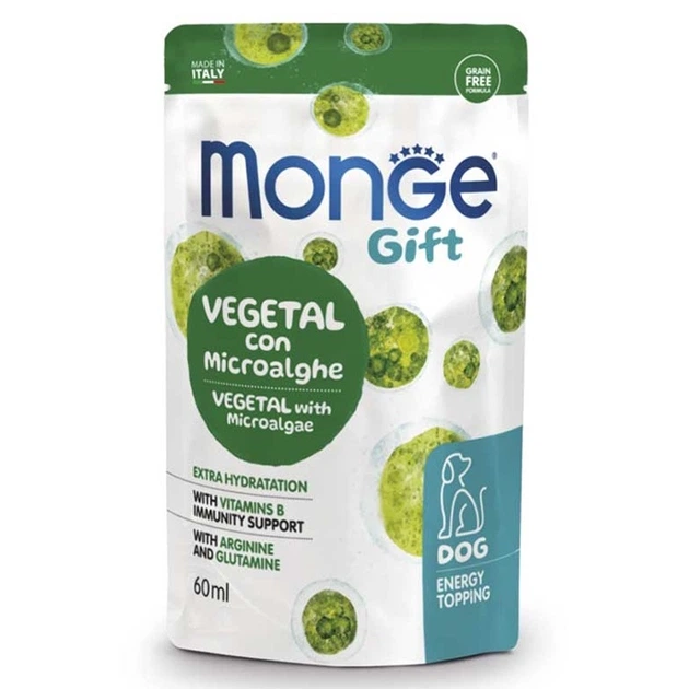 Ласощі для дорослих собак натуральний топінг з мікроводорстями Monge Gift Dog Energy Vegetal Hypo Microalgae 60 г