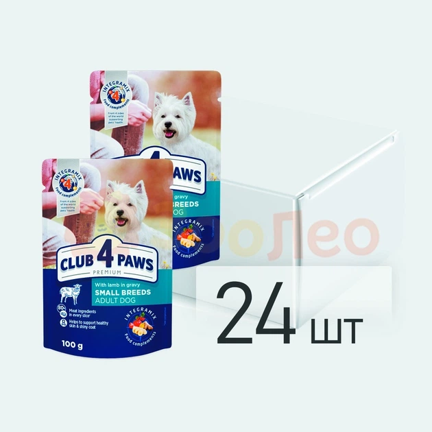 Консервований корм для собак дрібних порід CLUB 4 PAWS, ягня в соусі, 100 г (24 шт)