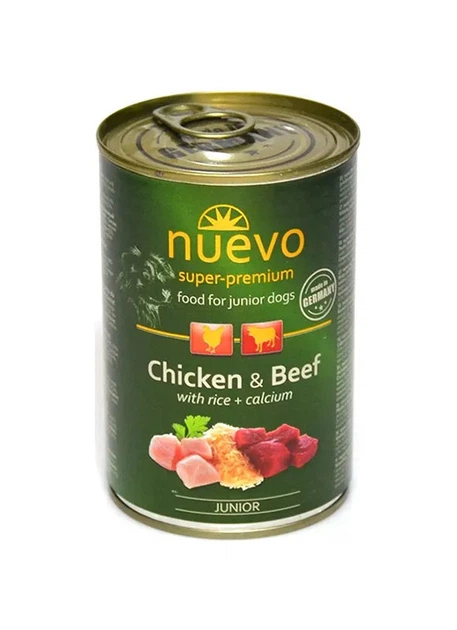 Nuevo Junior з куркою, яловичиною та рисом + кальцій консерви для собак, 400 г