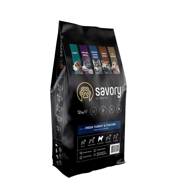 Сухий корм Savory для цуценят великих порід зі свіжим м’ясом індички та курки 12кг