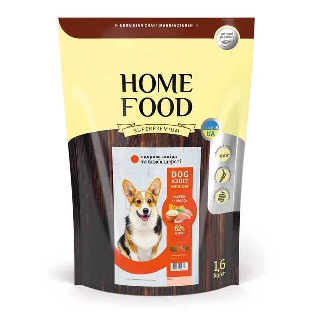 Сухий корм Home Food для цуценят середніх та великих порід з індичкою та лососем 1,6 кг