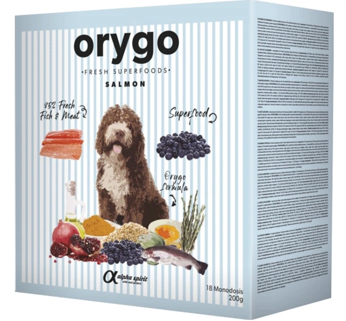 Напіввологий корм Orygo Salmon для дорослих собак з лососем та чорницею 3.6 кг, 18 х 200 г (8436586312152)