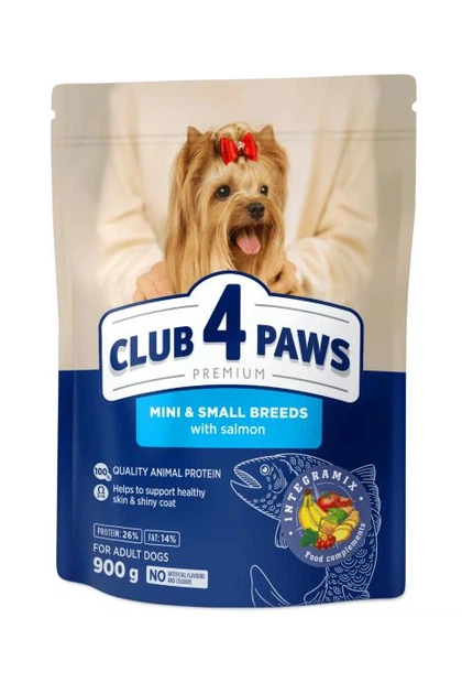 Сухий корм для дорослих собак Club 4 Paws для дорослих собак малих порід зі смаком лосося 900 г
