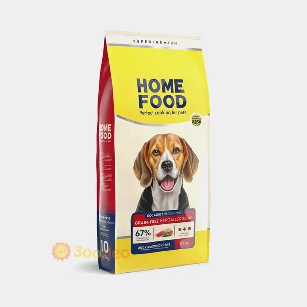Сухий корм Home Food беззерновий гіпоалергенний для дорослих собак середніх та великих порід "Качка та нут", 10 кг