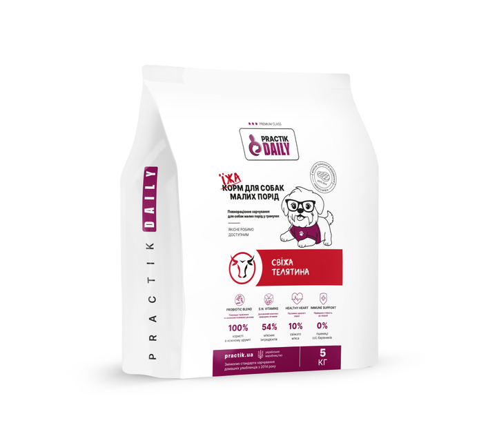 Їжа для собак малих порід "Свіжа телятина" PRACTIK DAILY 5 кг